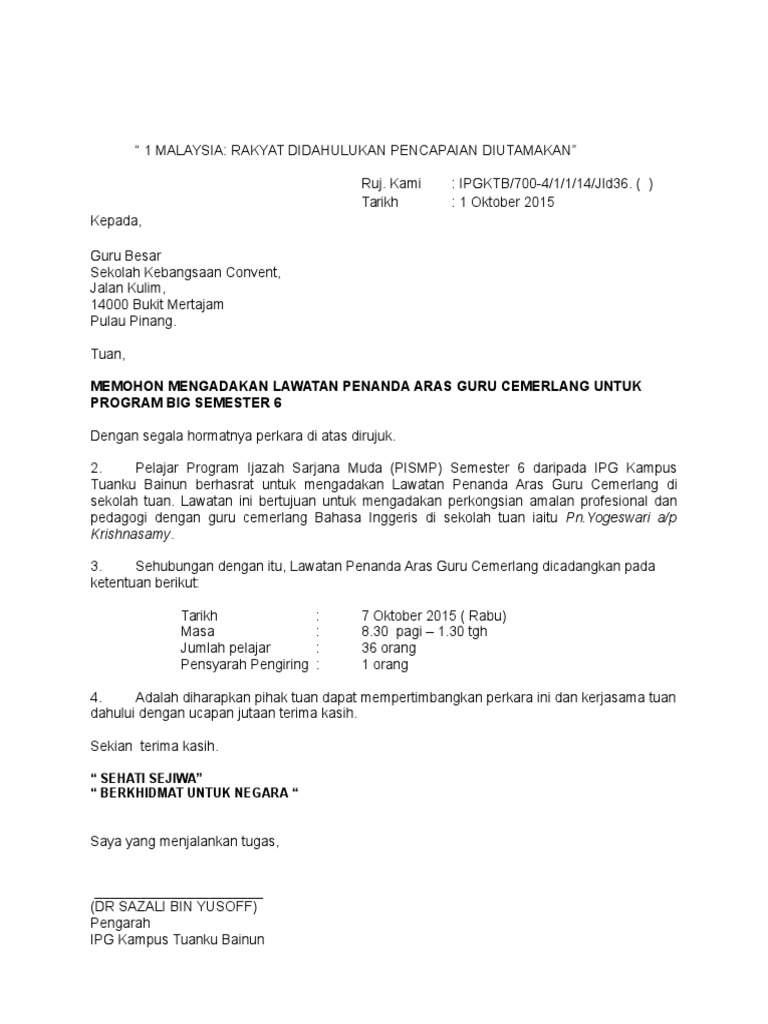 Contoh Surat Pemberitahuan Sekolah Di Malaysia